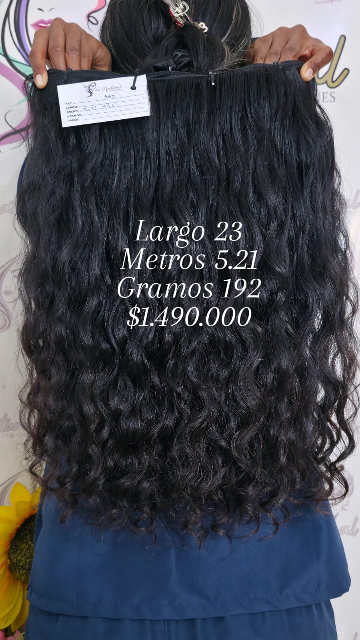 Extensión de cabello Crespo , de 23 pulgadas de longitud, Cantidad 5,21 Metros y  Pesa 192 Gramos.