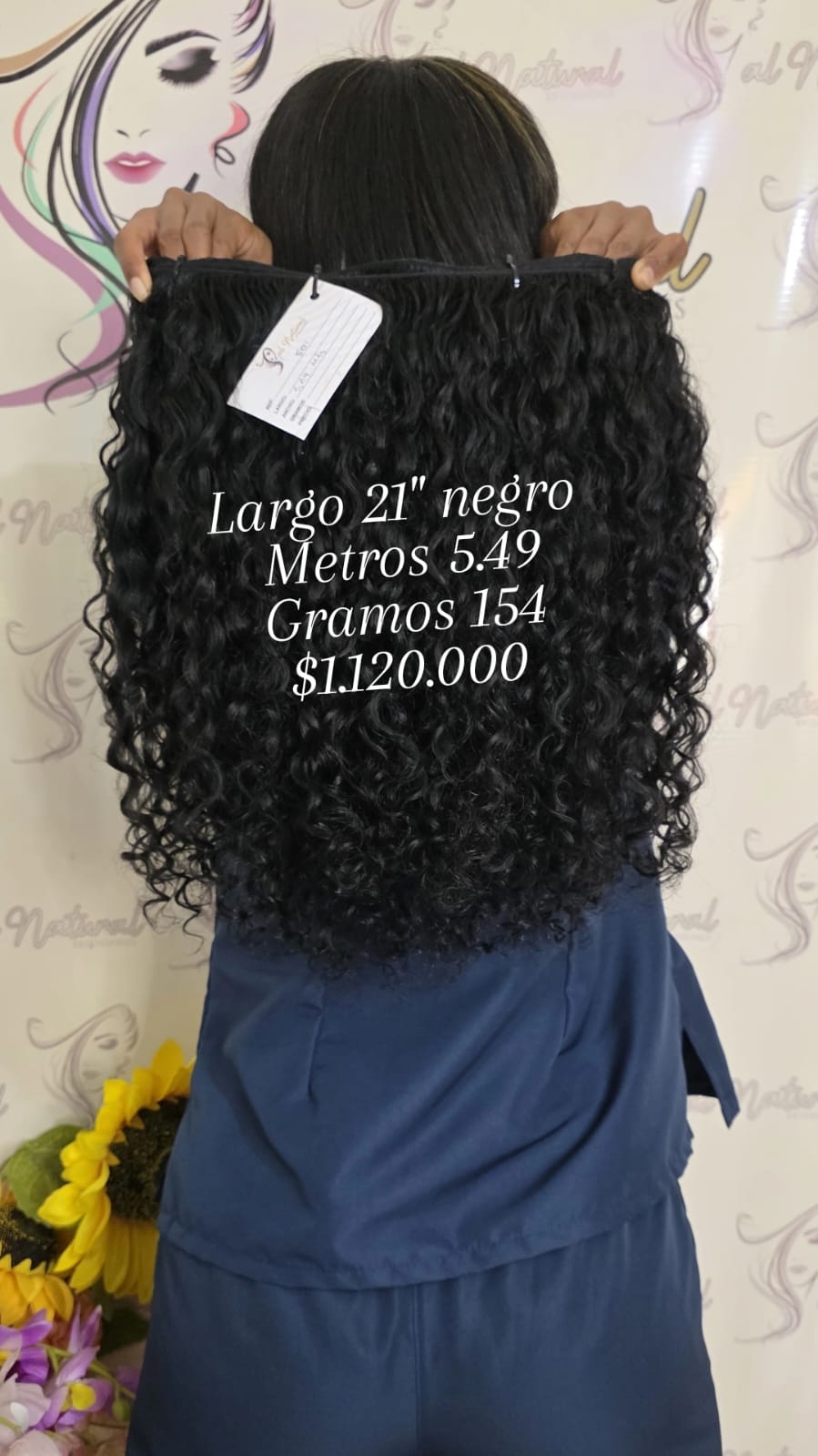 Extensión de cabello Crespo , de 21 pulgadas de longitud, Cantidad 5,49 Metros y  Pesa 154 Gramos.