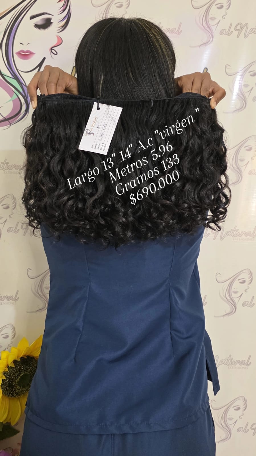 Extensión de cabello Crespo , de 13-14 pulgadas de longitud, Cantidad 5,96 Metros y Pesa 133 Gramos.