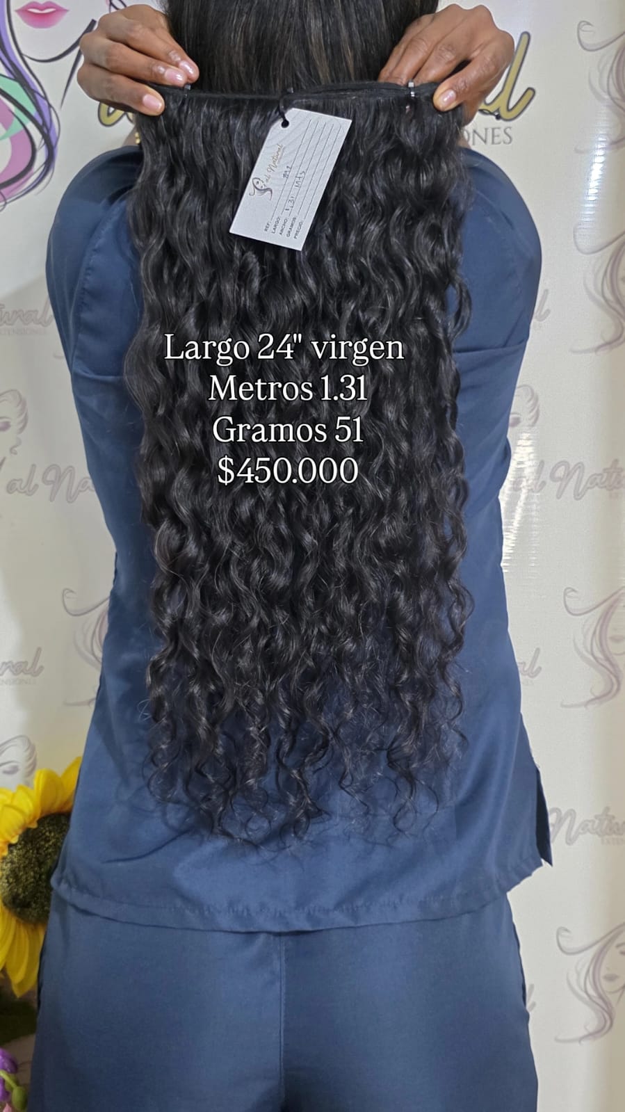 Extensión de cabello Crespo , de 24 pulgadas de longitud, Cantidad 1,31 Metros y  Pesa 51 Gramos.