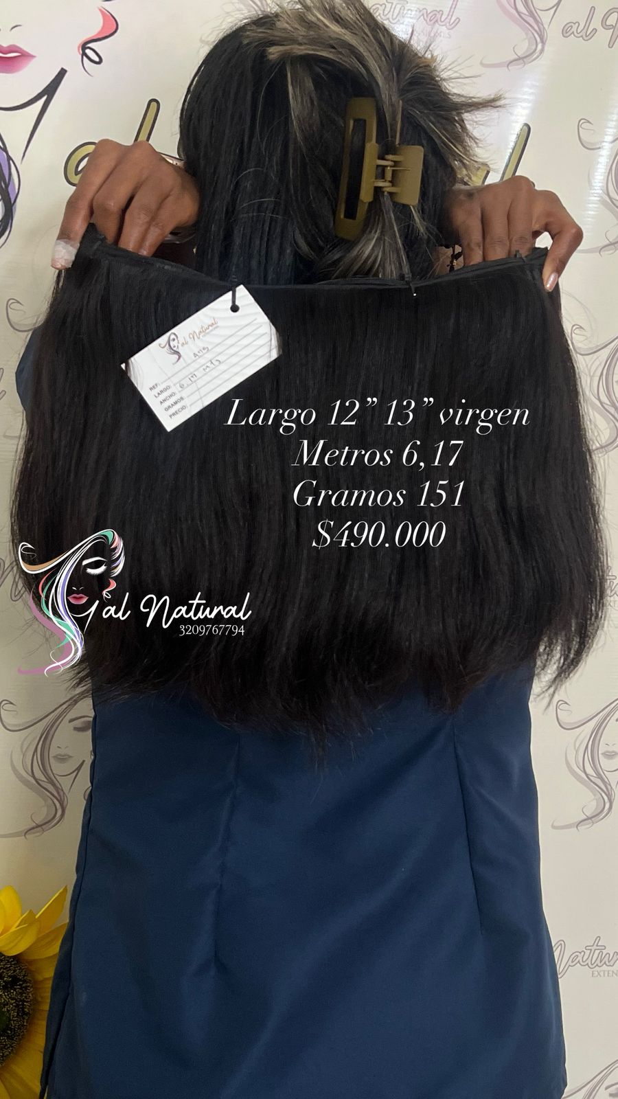 Extensión de cabello Liso , de 12-13 pulgadas de longitud, Cantidad 6,17 Metros Y Pesa 151 Gramos.