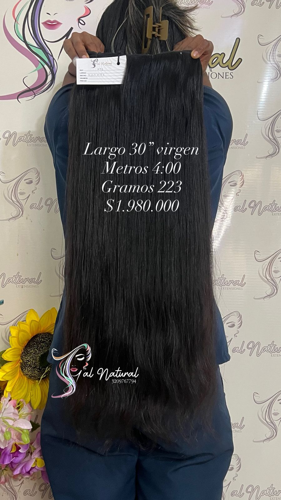 Extensión de cabello Liso  , de 30 pulgadas de longitud, Cantidad 4,00 Metros Y Pesa 223 Gramos.