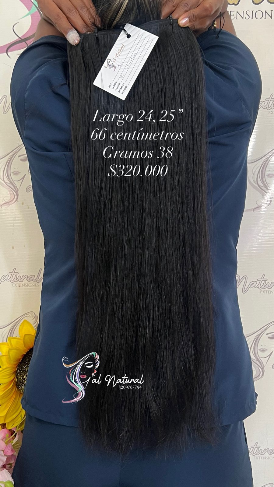 Extensión de cabello Liso , de 24-25 pulgadas de longitud, Cantidad 60 Centímetros Y Pesa 38 Gramos.