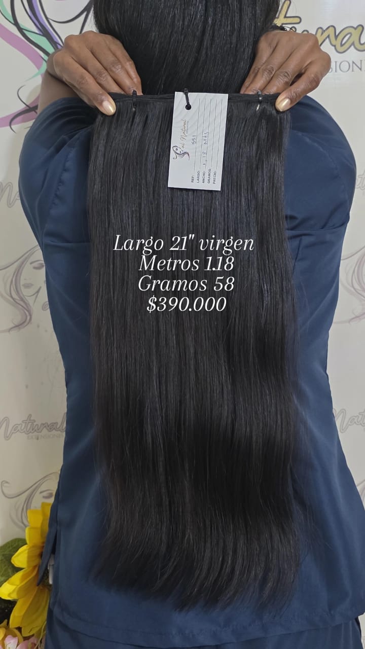 Extensión de cabello Liso , de 21 pulgadas de longitud, Cantidad 1,18 Metros Y Pesa 58 Gramos.