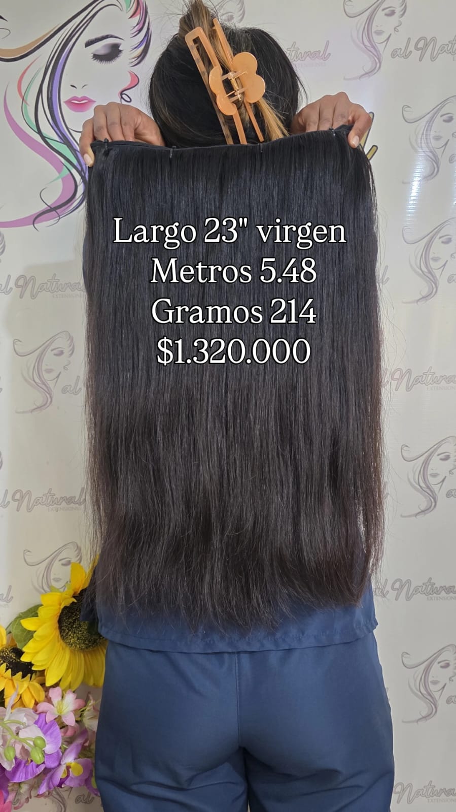Extensión de cabello Liso  , de 23 pulgadas de longitud, Cantidad 5,48 Metros Y Pesa 214 Gramos.