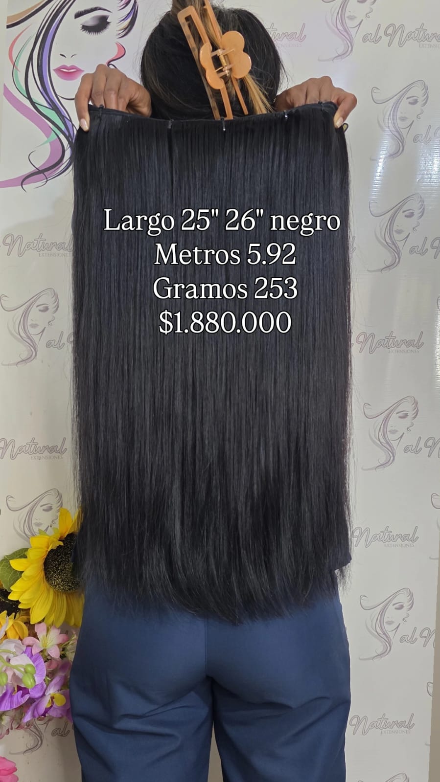 Extensión de cabello Liso , de 25-26 pulgadas de longitud, Cantidad 5,92 Metros Y Pesa 253 Gramos.