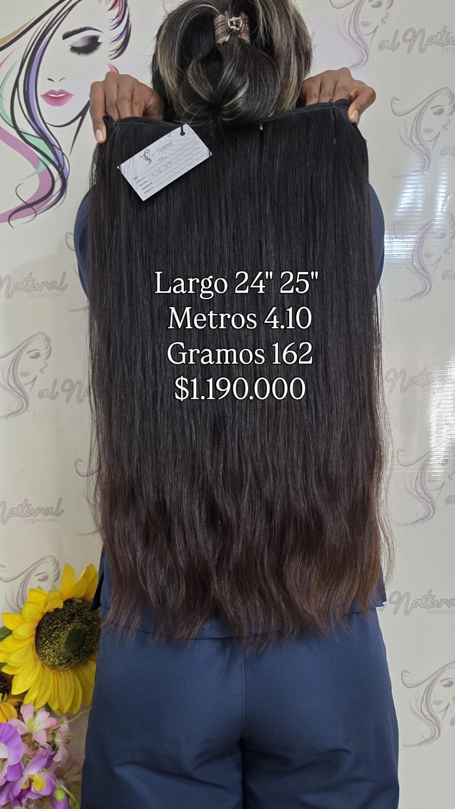 Extensión de cabello Liso , de 24-25 pulgadas de longitud, Cantidad 4,10 Metros Y Pesa 162 Gramos.