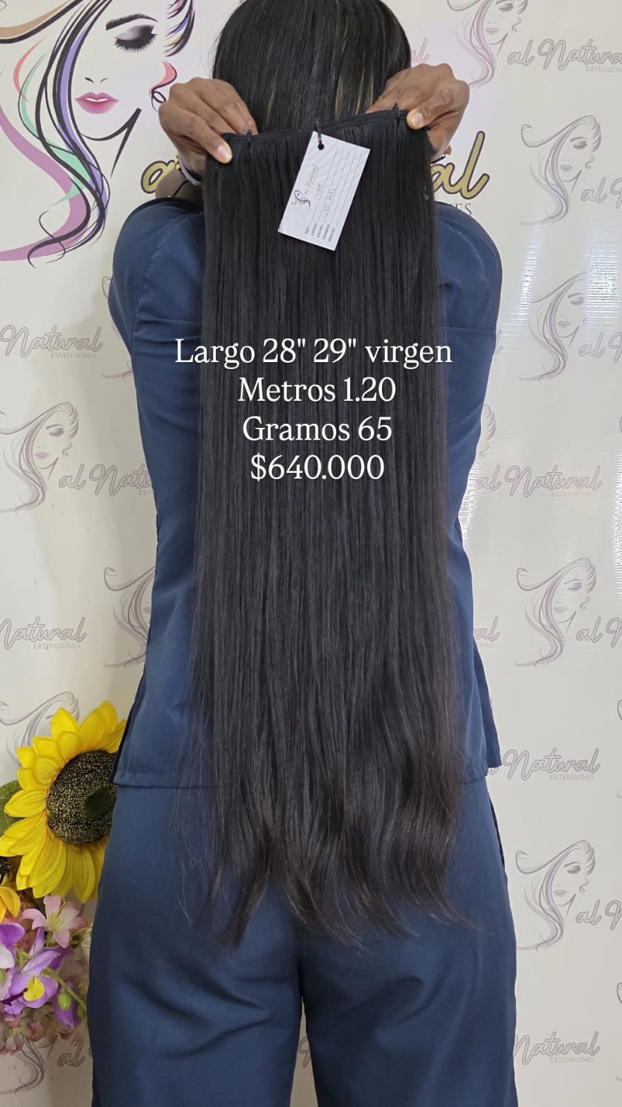 Extensión de cabello Liso , de 28-29 pulgadas de longitud, Cantidad 1,20 Metros Y Pesa 65 Gramos.