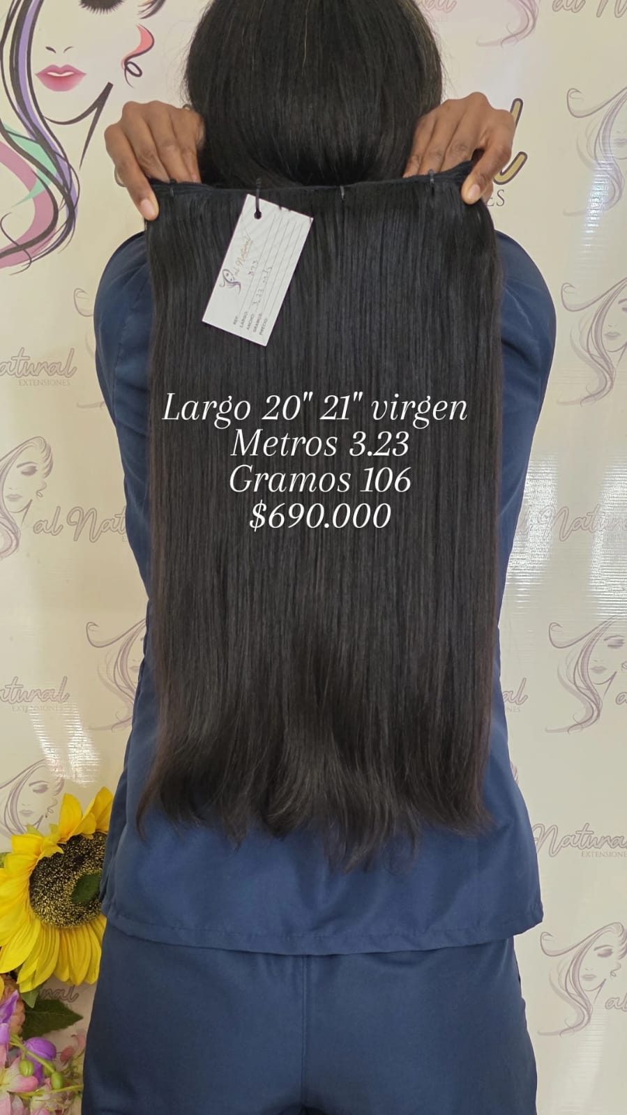 Extensión de cabello Liso , de 20-21 pulgadas de longitud, Cantidad 3,23 Metros Y Pesa 106 Gramos