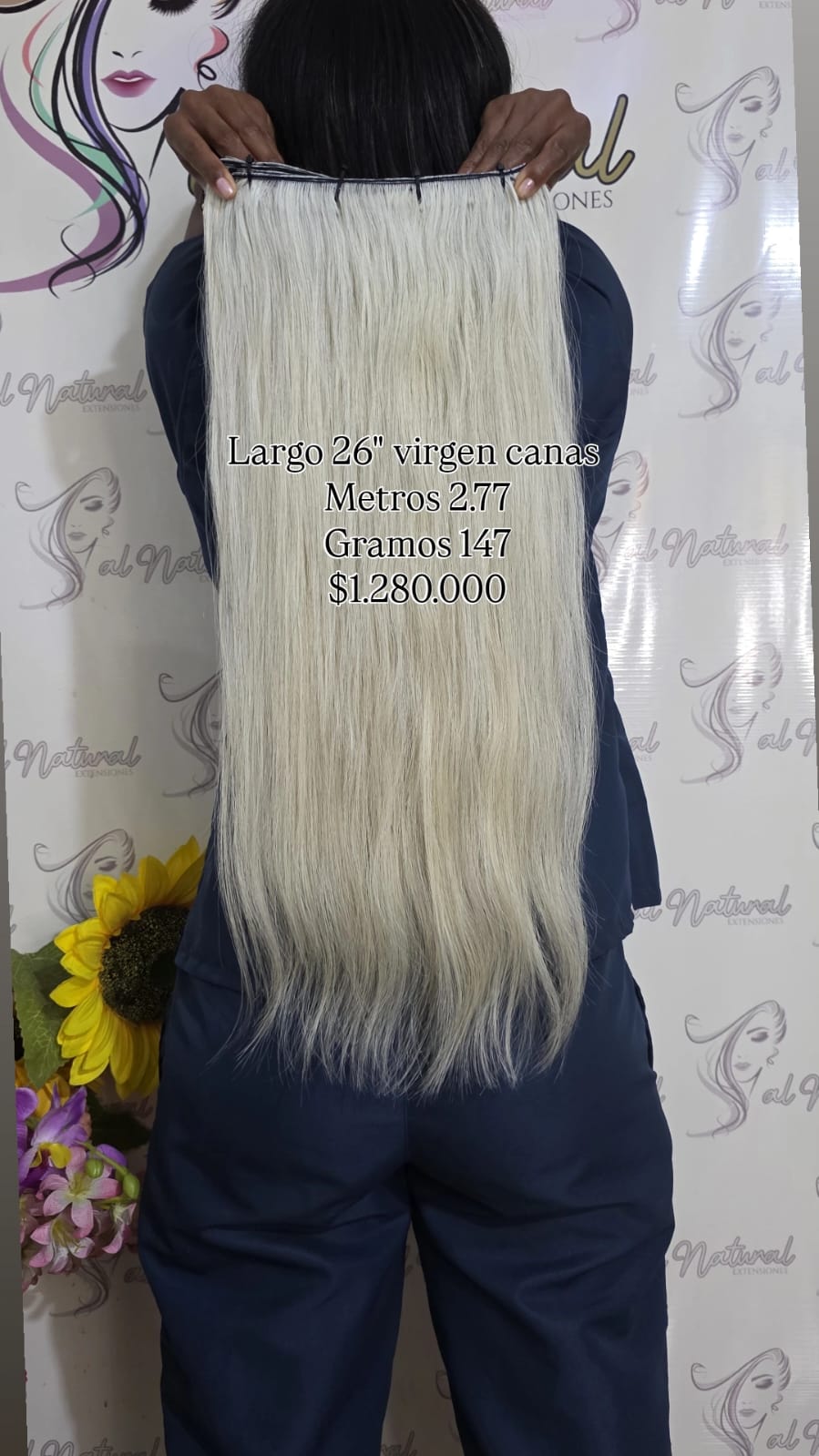 Extensión de cabello Liso , de 26 pulgadas de longitud, Cantidad 2,77 Metros Y Pesa 147 Gramos
