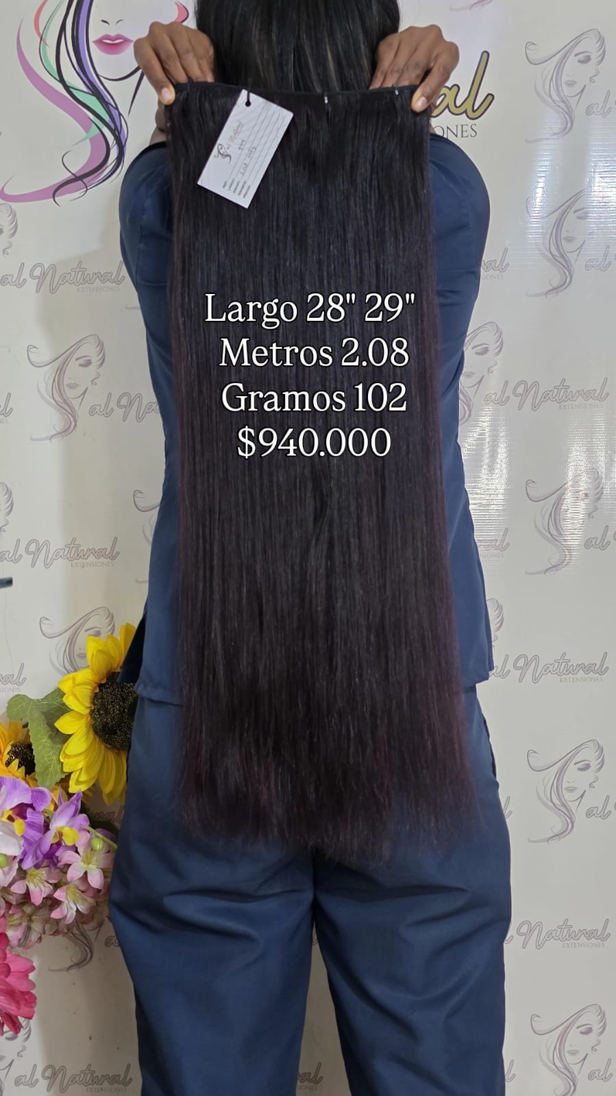 Extensión de cabello Liso  , de 28-29 pulgadas de longitud, Cantidad 2,08 Metros Y Pesa 102 Gramos