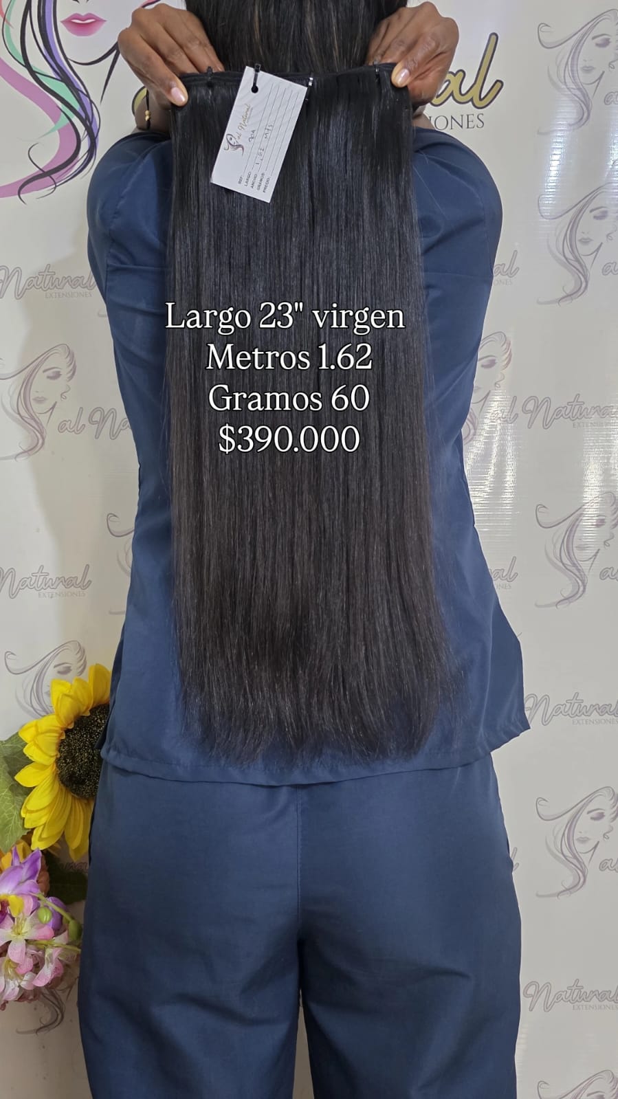 Extensión de cabello Liso , de 23 pulgadas de longitud, Cantidad 1,62 Metros Y Pesa 60 Gramos