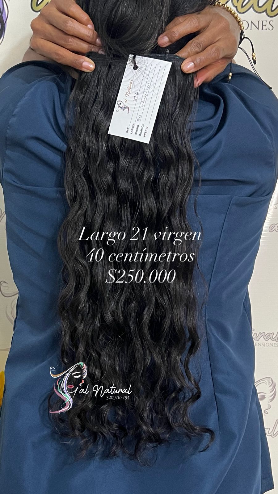 Extensión de cabello ondulado, de 21 Pulgadas de longitud, Cantidad 40 Centímetros.
