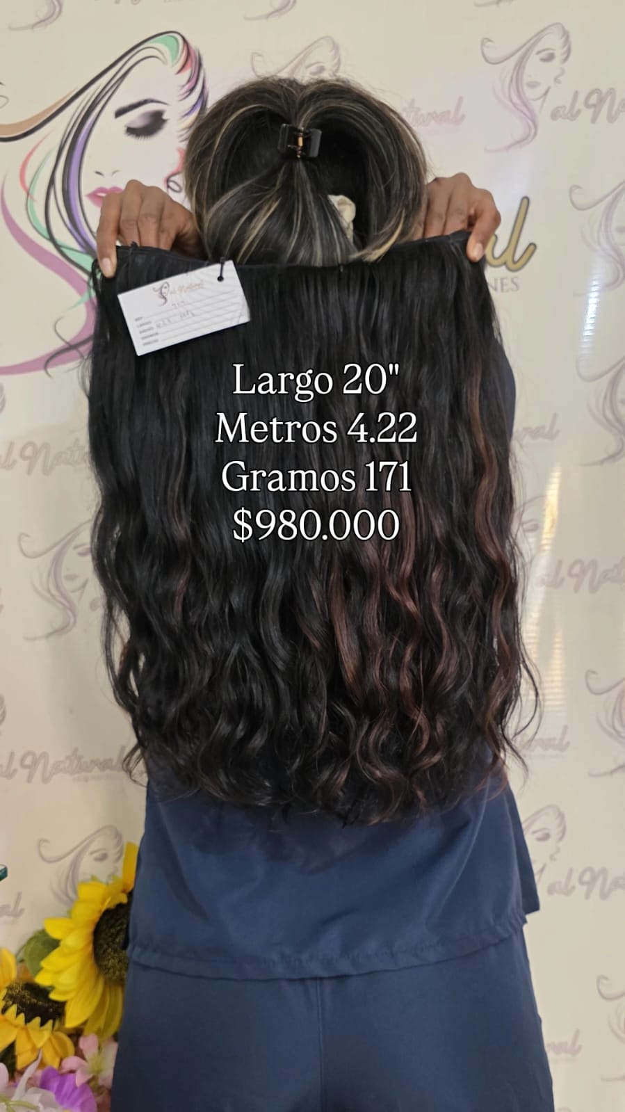 Extensión de cabello ondulado, de 20 Pulgadas de longitud, Cantidad 4,22 Metros y pesa 171 gramos.