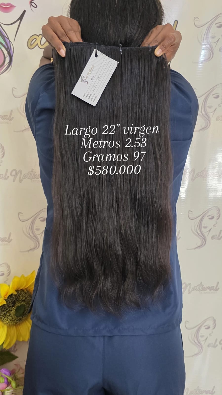 Extensión de cabello ondulado, de 22 Pulgadas de longitud, Cantidad 2,53 Metros y pesa 97 gramos.