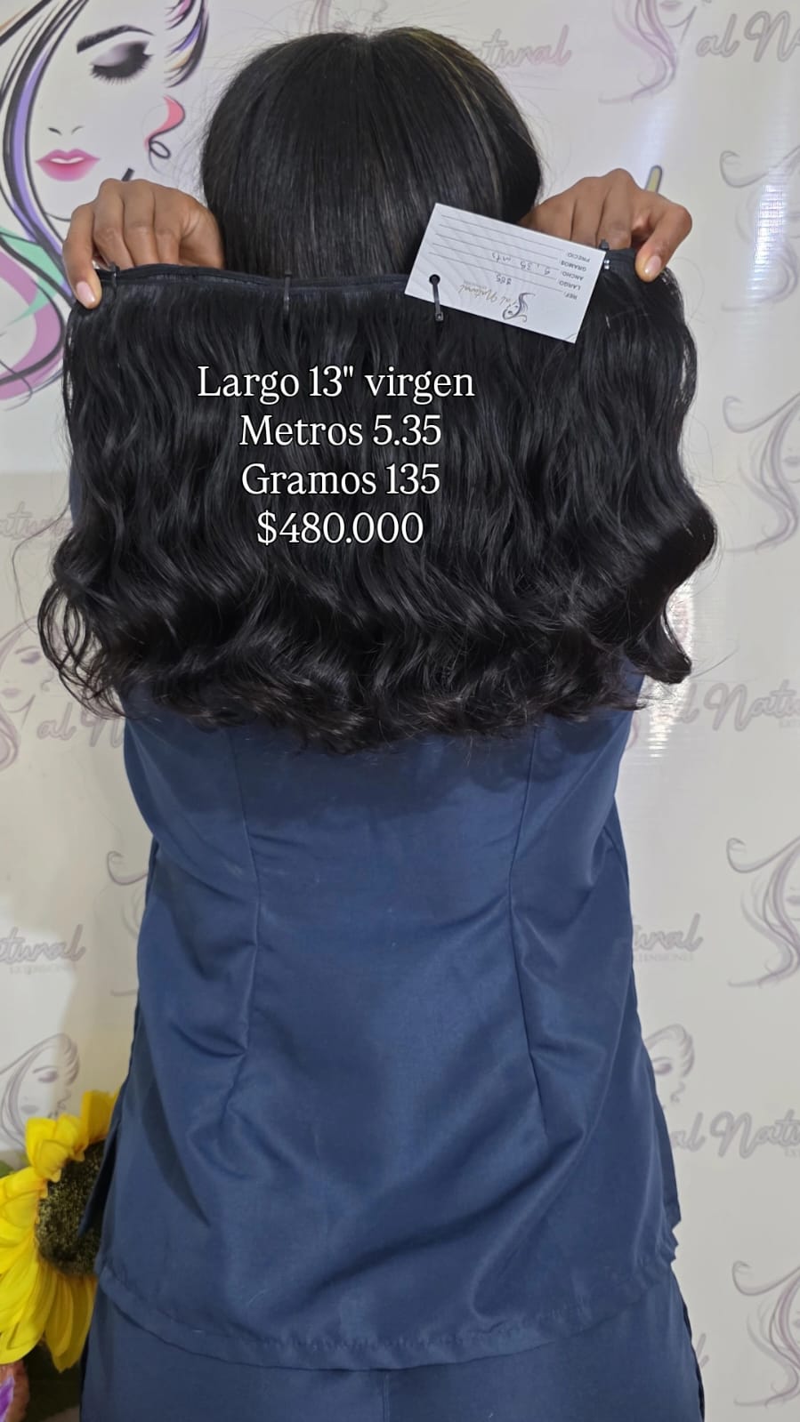 Extensión de cabello ondulado, de 13 Pulgadas de longitud, Cantidad 5,35 Metros y pesa 135 gramos.