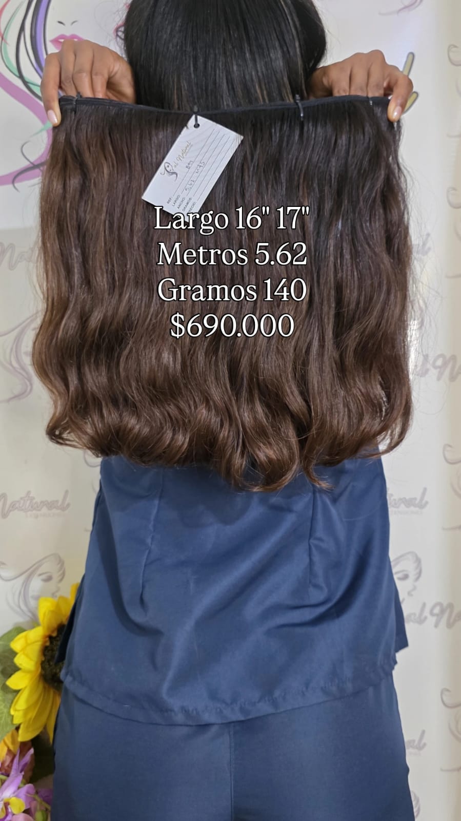 Extensión de cabello ondulado, de 16-17 Pulgadas de longitud, Cantidad 5,62 Metros y pesa 140 gramos.