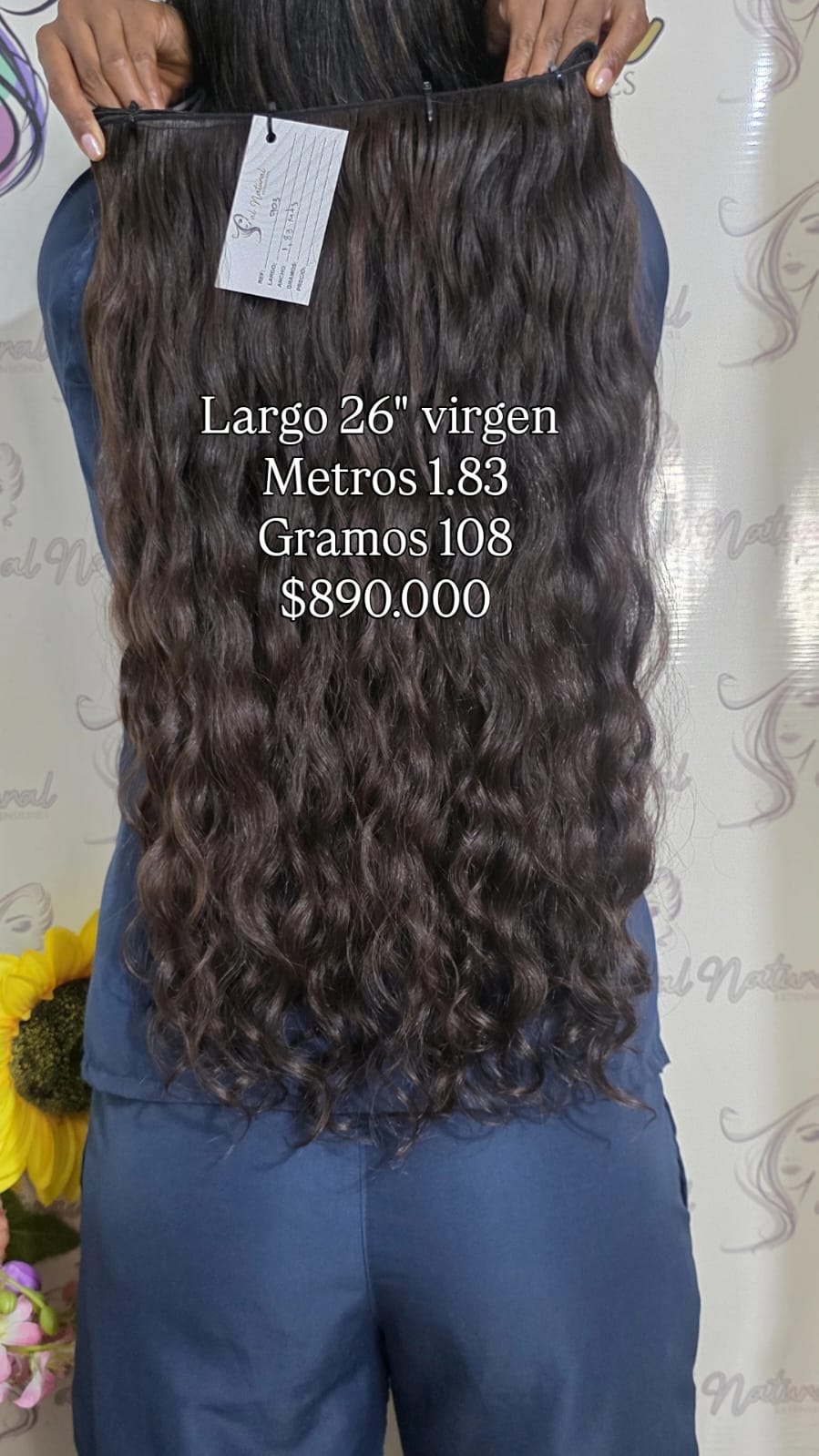 Extensión de cabello ondulado, de 26 Pulgadas de longitud, Cantidad 1,83 Metros y pesa 108 gramos.