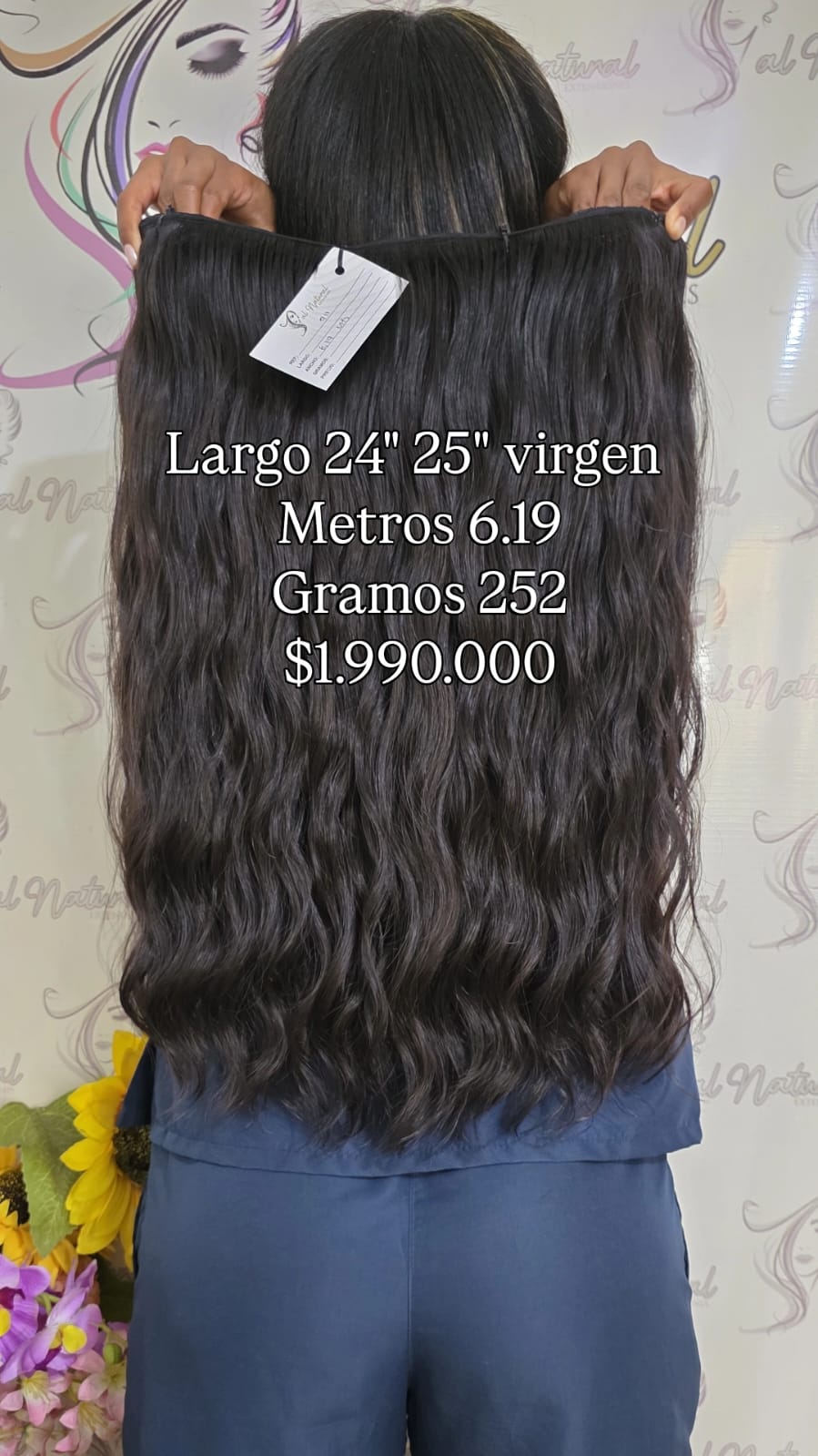 Extensión de cabello ondulado, de 24-25 Pulgadas de longitud, Cantidad 6,19 Metros y pesa 252 gramos.